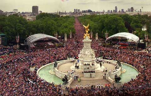 The parade, produced by Helen Marriage, showed the social, political and cultural life of Great Britain since 1952. Floats, designed by Jonathan Park of Studio Park, with costumes by Katy McPhee, depicting art, science, toys, fashion, food and family life intermingled with transport and other examples of the period were seen by the Queen, her family, an audience of hundreds of thousands in the Mall and millions of TV viewers worldwide.