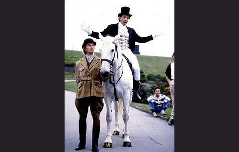 War Dance was a commission from the Nottingham Festival and produced by Lumiere & Son.  The perambulatory show, set on the eve of the First World War, was performed by over a hundred actors, singers, musicians and a horse in the grounds of Nottingham Castle. Text by David Gale, music by Jeremy Peyton Jones, lighting by Simon Corder and costumes by Jan Blake.