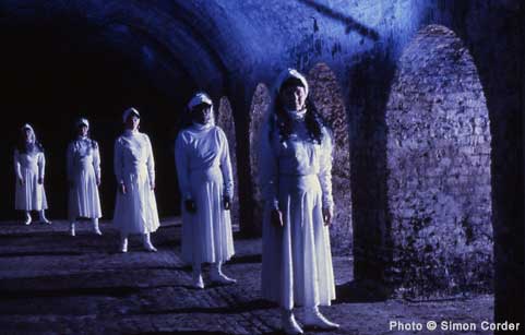 Touring music theatre show for Lumiere & Son, about contemporary urban panic, performed by five identically dressed women with text by David Gale, music by Jeremy Peyton Jones, costumes by Sandy Powell, projection system software designed by Steve Wald. Images, by Simon Corder, were projected continuously throughout the performance.